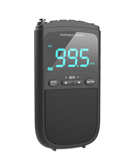 ・満充電時使用時間目安(スピーカー使用時):AM受信時:約10時間、FM受信時:約10時間